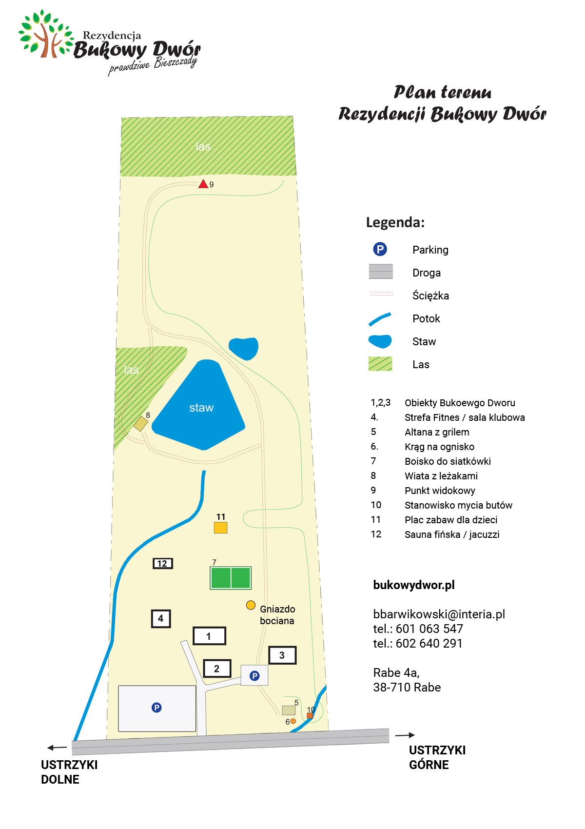 Zapraszamy do Rezydencji Bukowy Dwór, która rozpieści Państwa standardem i urzeknie kameralnością. Rezydencje stanowi kompleks czterech budynków, których założenie architektoniczne nawiązuje do wschodniogalicyjskich zabudowań dworskich. Całość usytuowana jest na trzech hektarach prywatnego, rekreacyjnie zagospodarowanego terenu, poza terenem zabudowanym wsi Rabe, u stóp pasma Żukowa i tuż przy dużej pętli bieszczadzkiej. Bukowy Dwór stanowi idealną bazę wypadową, ale jest też celem samym w sobie… Dzika przyroda, przestrzeń, mozaika kulturowa tego regionu inspiruje i urzeka – wierzymy ze pozwoli się Państwu oderwać od codzienności